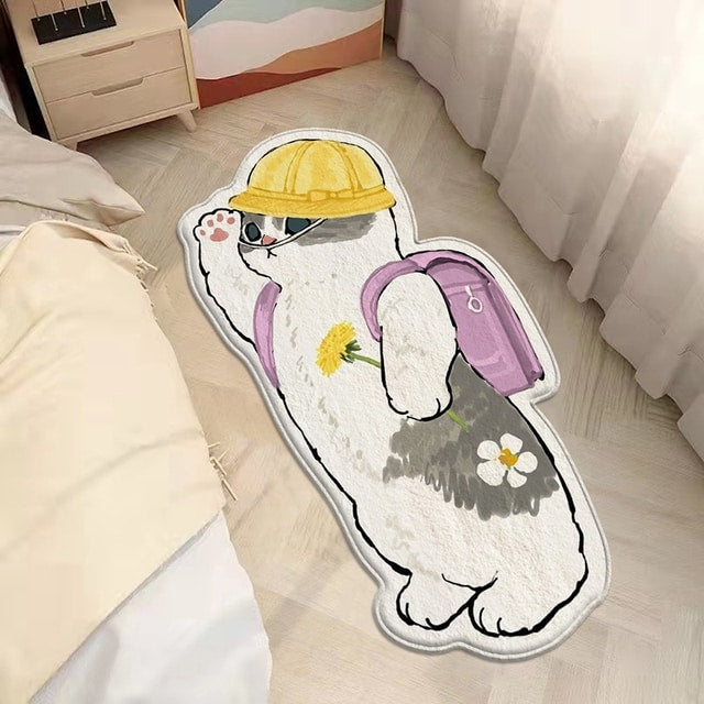 This Lovely Cat Cartoon Rug Mat is sure to put a smile on your face every time you see it! Made of soft, shaggy material, it's perfect for your bedside or as a doormat. The thick, fluffy pile will make your feet happy, and the irregular shape adds a touch of fun.