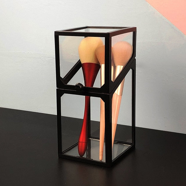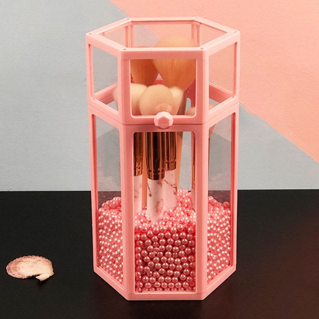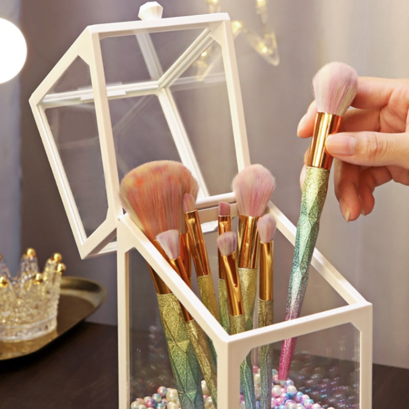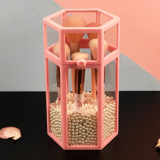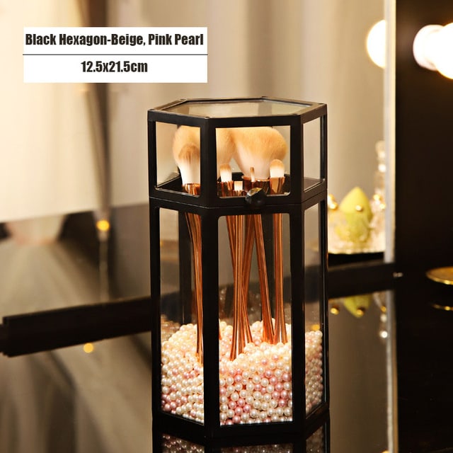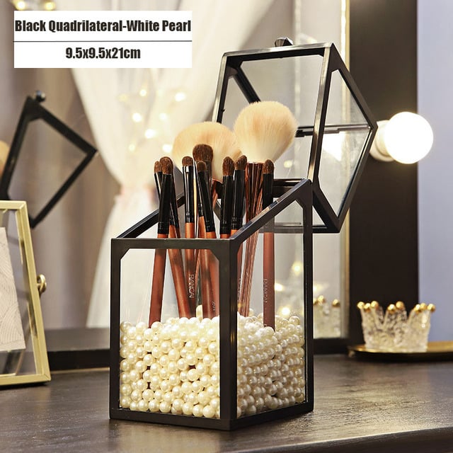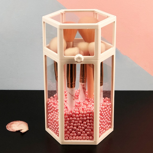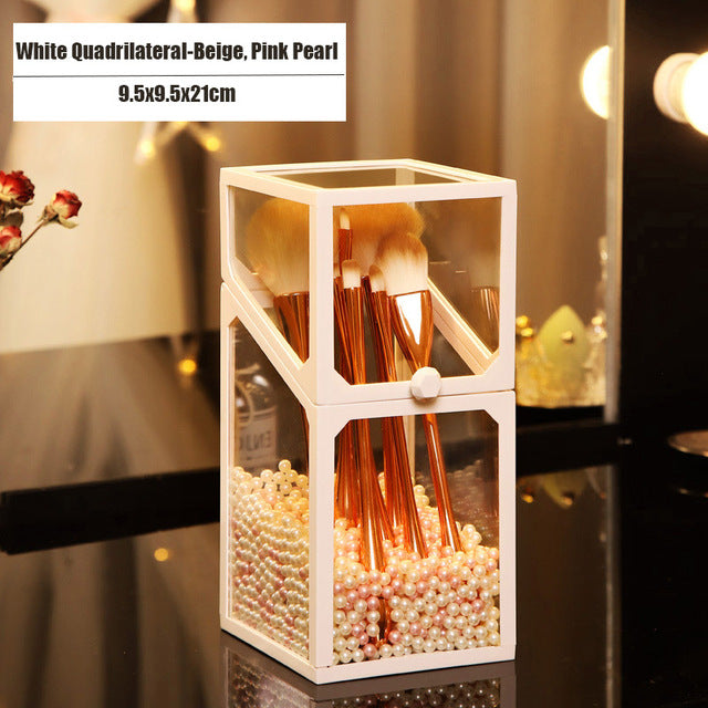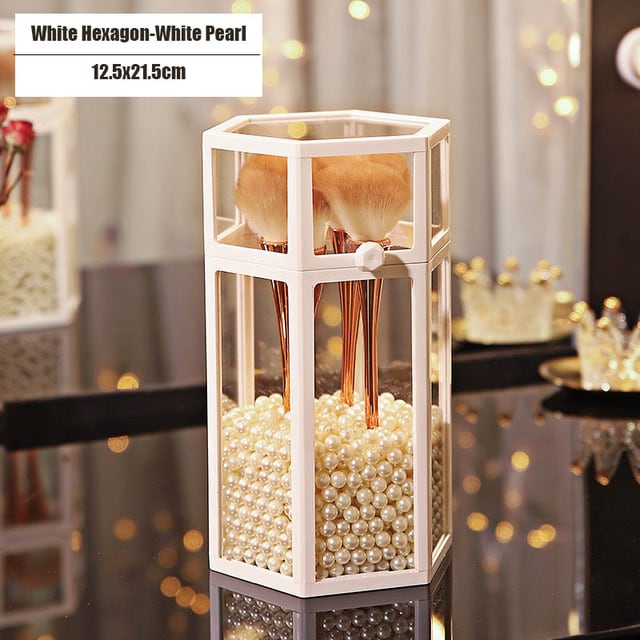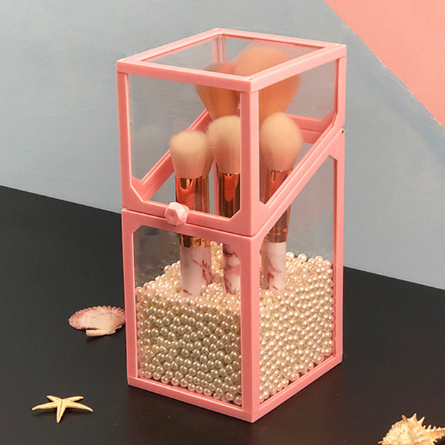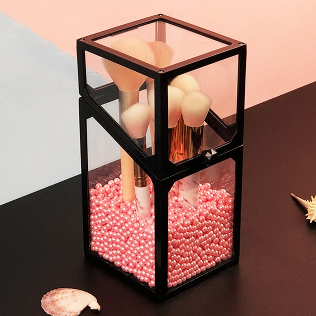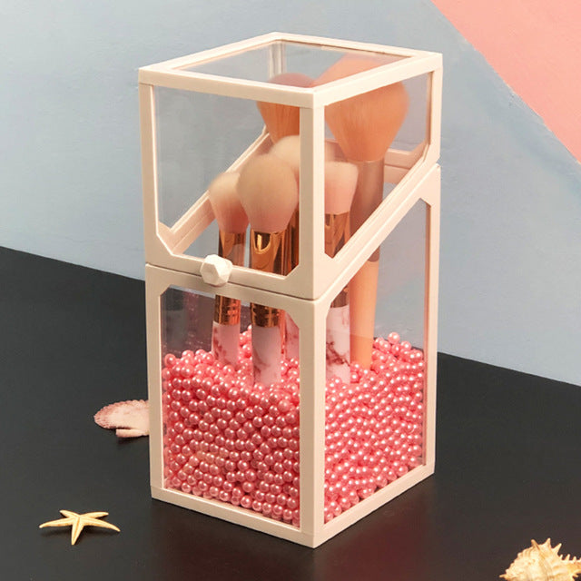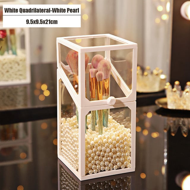 - Flip cover cosmetic brush storage box, multiple pearls can not fall down when placing cosmetic brushes, large capacity design.