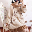 Material: Polyester, Velvet Neckline: Peter pan Collar Sleeve Style: Regular Decoration: Bow, Cat Embroidery, Pockets Dresses Length: Above Knee, Mini Silhouette: A-LINE Closure Type: Pullover Sleeve Length(cm): Full Pattern Type: Cartoon Color: Coffee, KhakiPackage Includes: