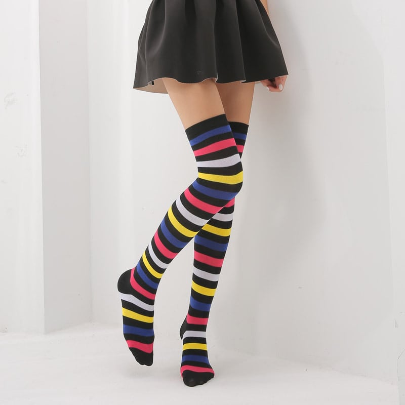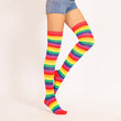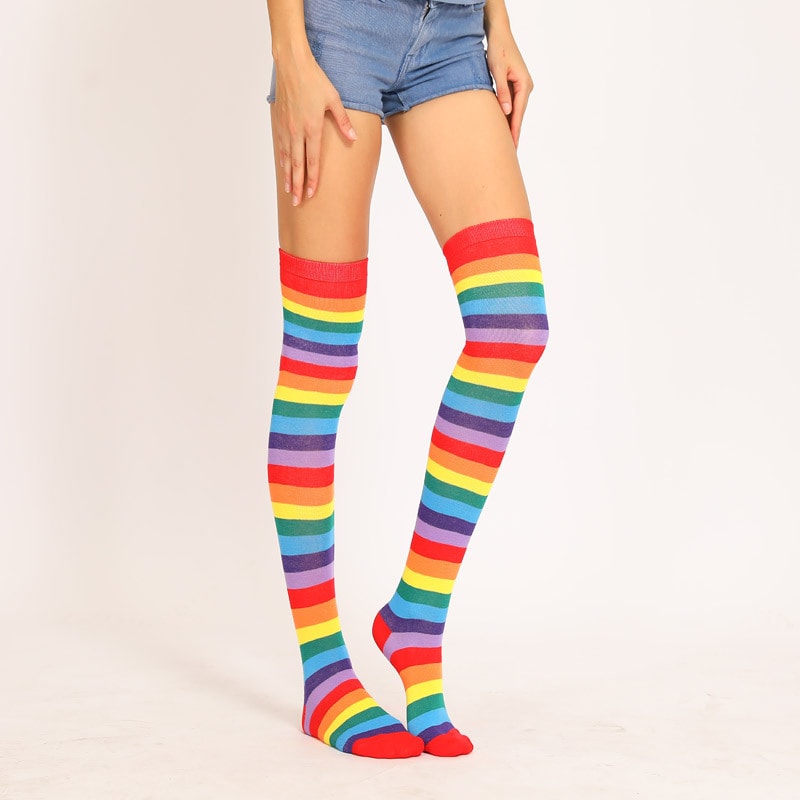 Looking for something fun and unique to wear during the spring and autumn months? Check out our new Rainbow Stripe Knee High Socks! Made from a soft, comfortable fabric, these socks are perfect for showing off your fun and stylish side. Whether you're going out on the town or just running errands, these socks will keep your feet warm and looking great.