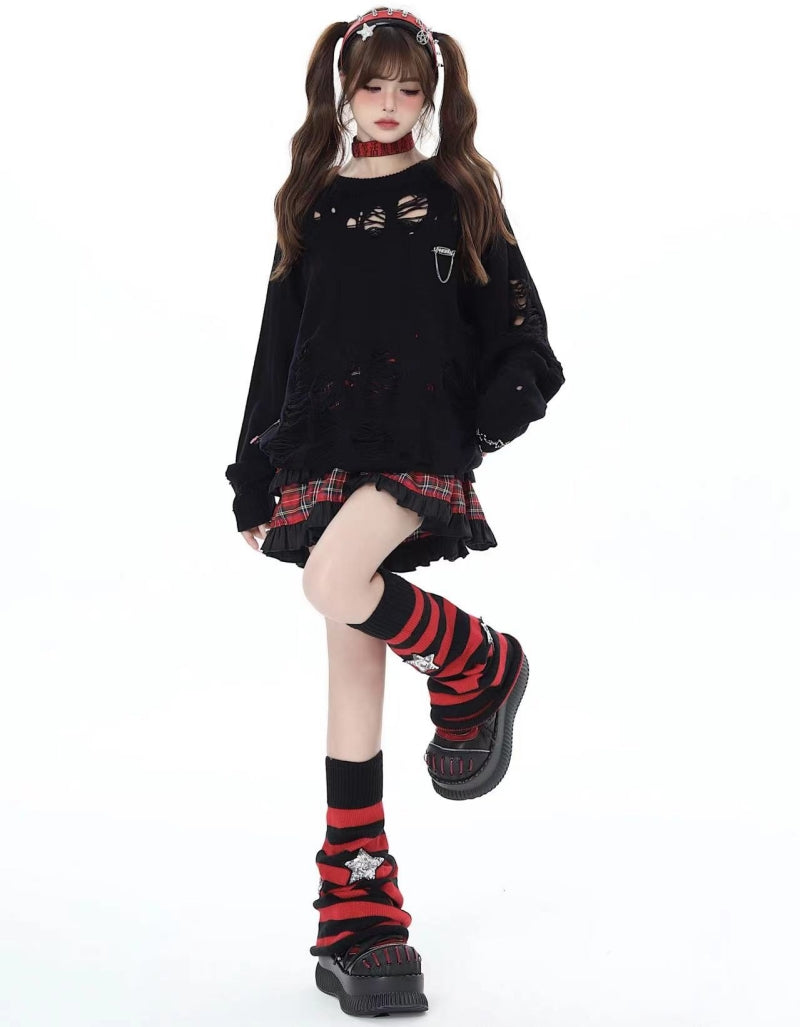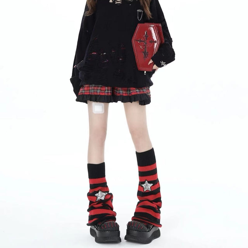 size: one size Style: hot girl, sweet, goth Color: red and black stripes Applicable seasons: four seasons Even number: 1 pairPackage Includes: