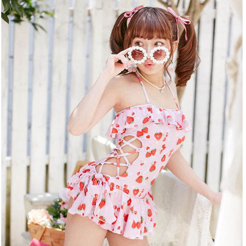 This Ruffled Strawberry Swimsuit is the perfect addition to your summer wardrobe! The sweet Lolita style is perfect for cute girls, and the push-up padding ensures a flattering fit. The swimsuit also features lace-up detailing on the front, making it unique and stylish. Whether you're hitting the beach or pool, this swimsuit is sure to turn heads!