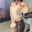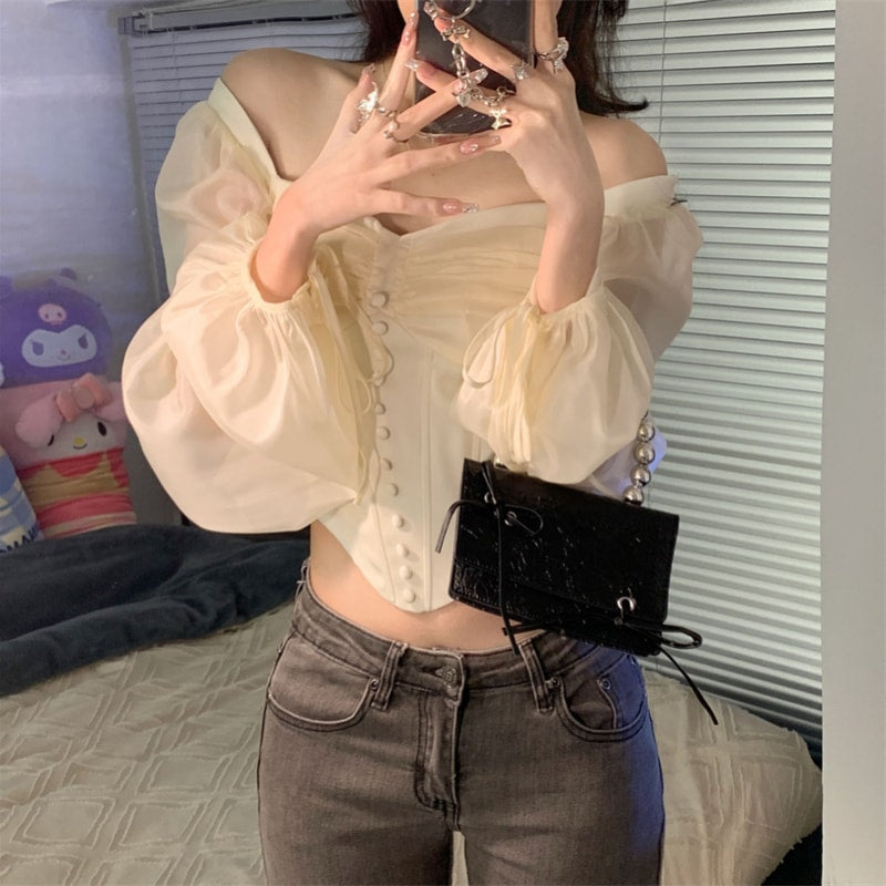 Sexy Off-shoulder Puff Sleeve Chiffon Shirt