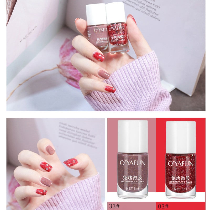 Type: Quick Dry Normal Without Lamp Nail Polish Quantity: 1PC Net Weight: 8ml Color: 33 colors Shelf life: 3 yearsPackage Includes: