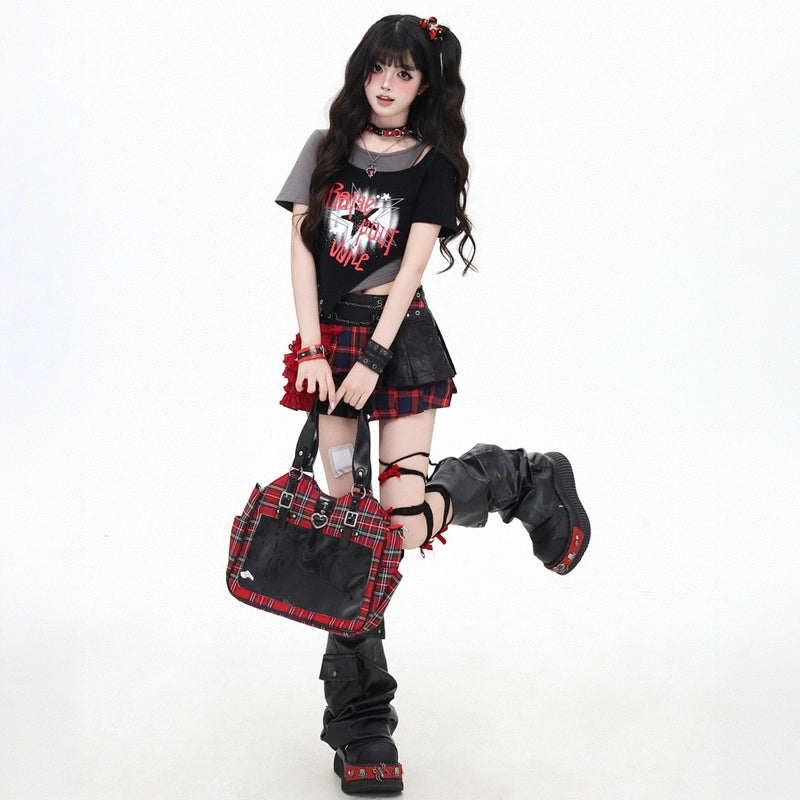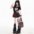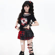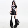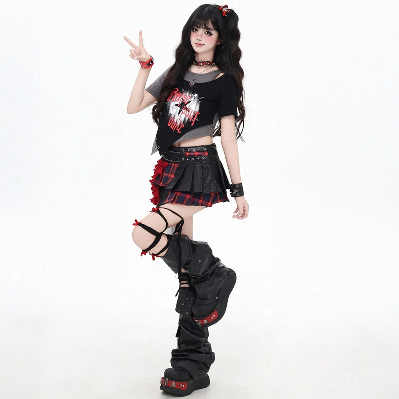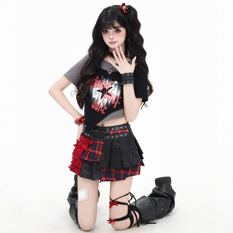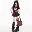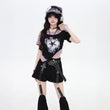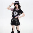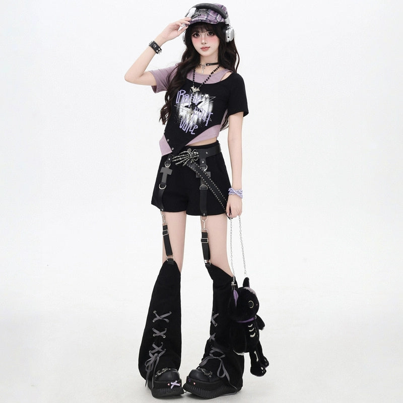 Popular elements: printing Style: sweet and cool Clothing version: slim fit Sleeve type: regular Material composition: 95% cotton + 5% spandex Applicable season: summer Sleeve length: short sleeves Collar type: round neck Size: S, M, L Color: black and gray splicing, black and purple splicingPackage Includes: