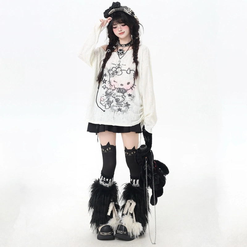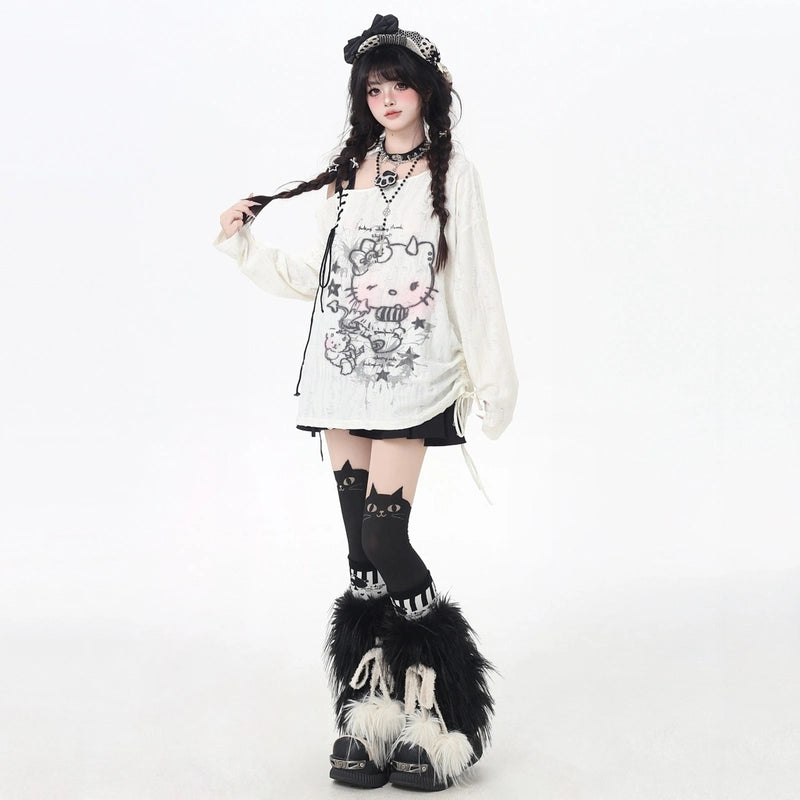 Soft Asian Style Hello Kitty Tee: Elevate your fall wardrobe with this adorable long-sleeved T-shirt! Loose fit, cute design, and comfy fabric await!
