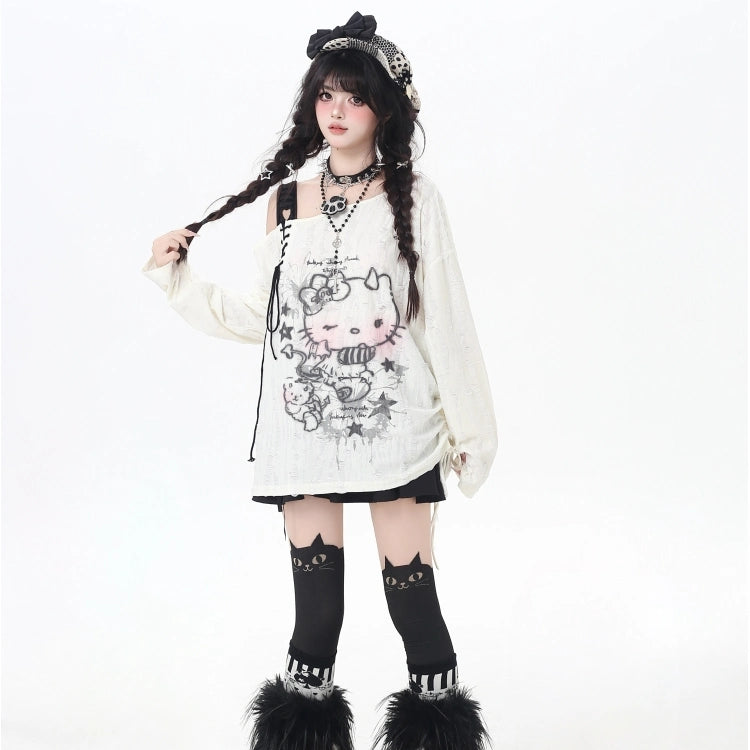 Soft Asian Style Hello Kitty Printed Long-Sleeved T-shirt