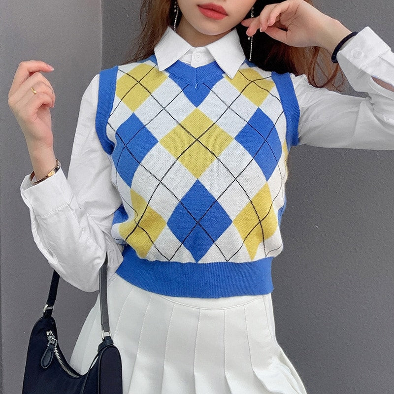 Acrylic, Polyester O-Neck Collar Spring/Autumn Sleeveless