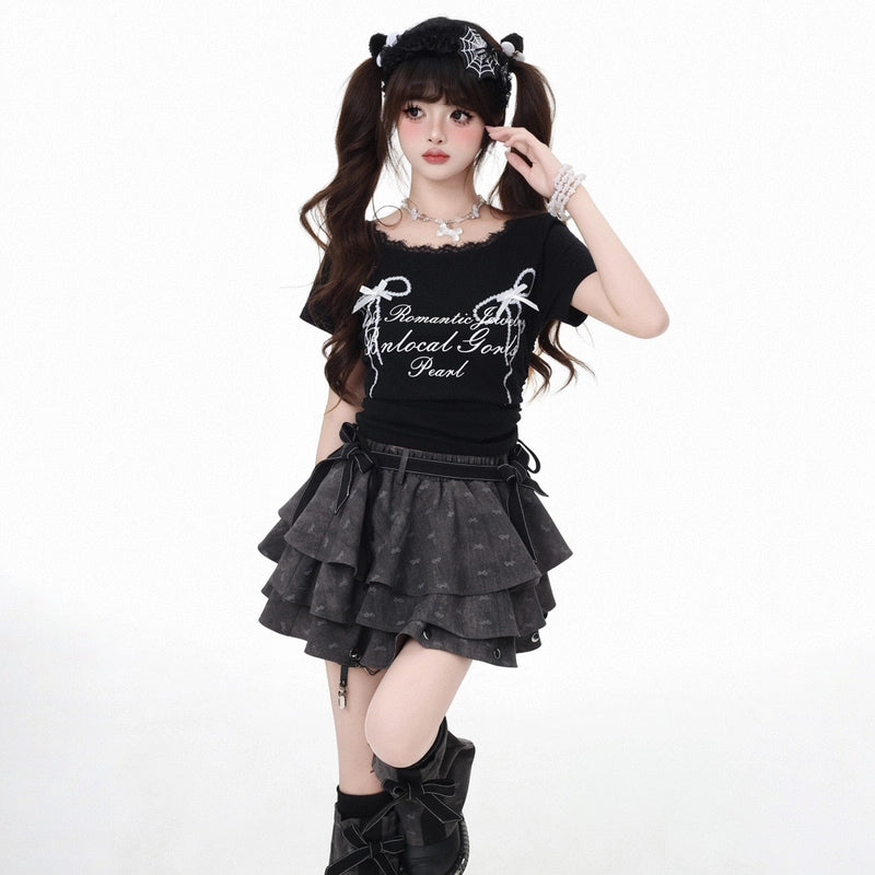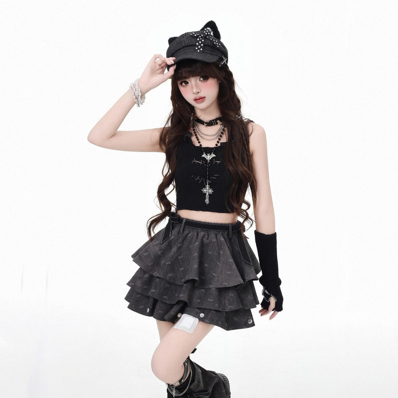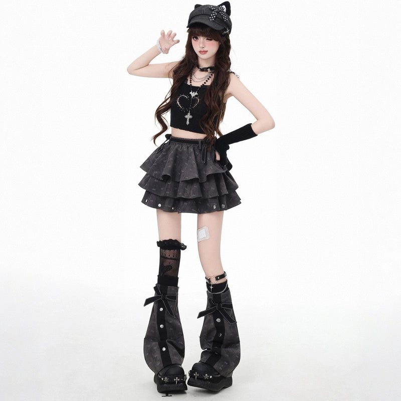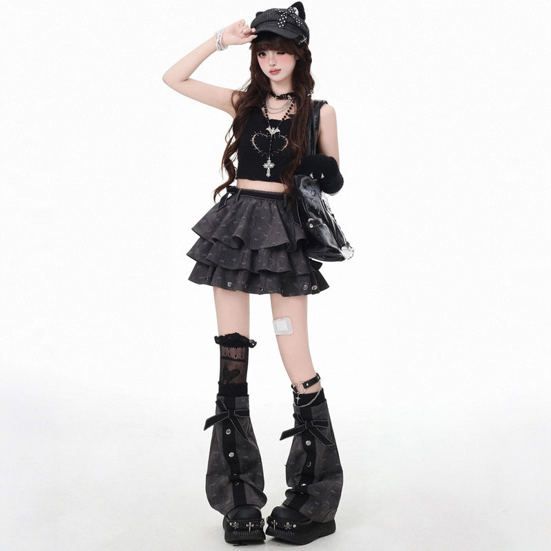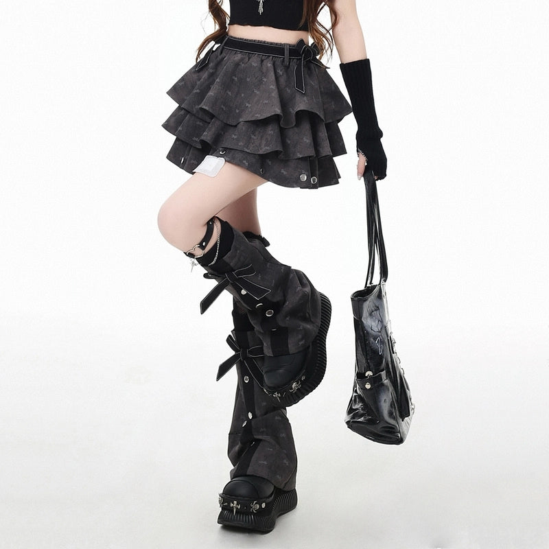 Elevate your summer wardrobe with our Dark Gray Cake Skirt! Featuring a unique pattern and leg cover, available in S, M, L sizes for a perfect fit!