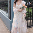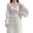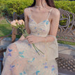 Summer Iridescent Butterflies Beige Straps Long Dress