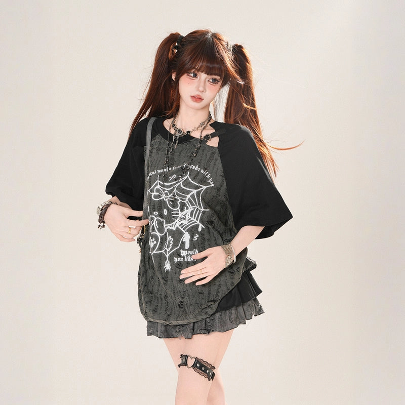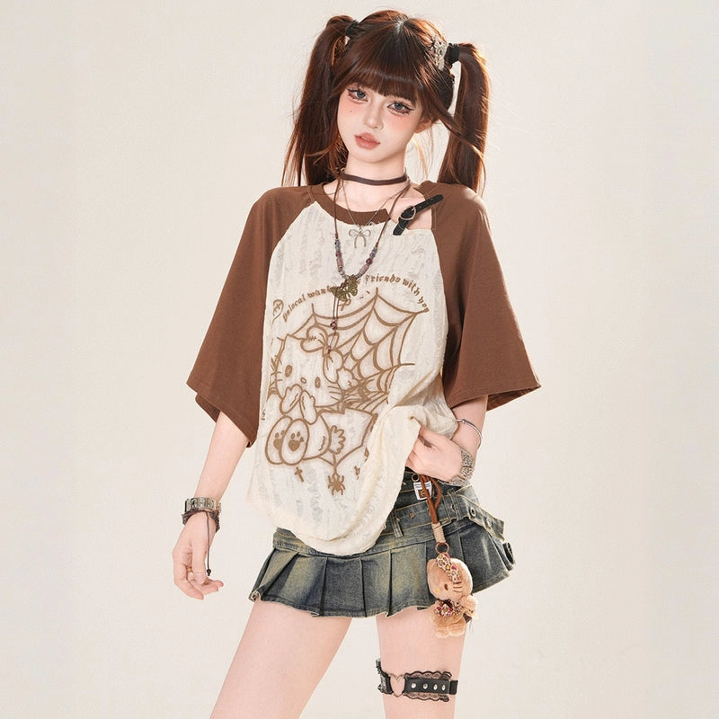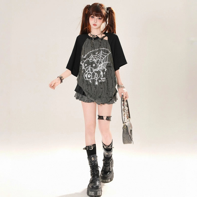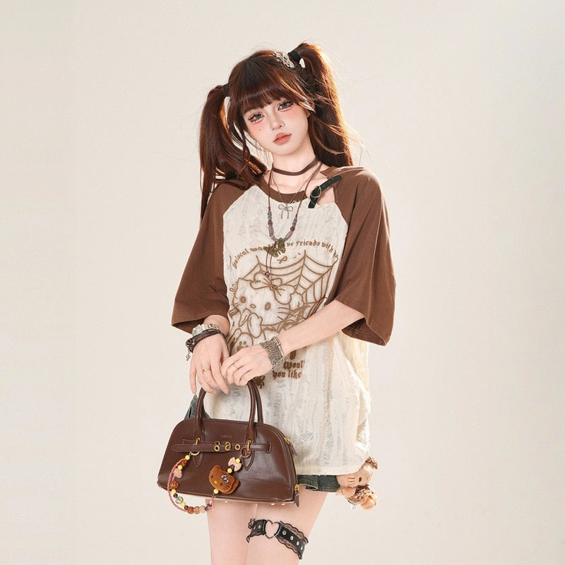 Hello Kitty printed T-shirt for summer! Embrace Korean style with this loose, short sleeve top featuring a creative design. Available in apricot and gray!