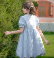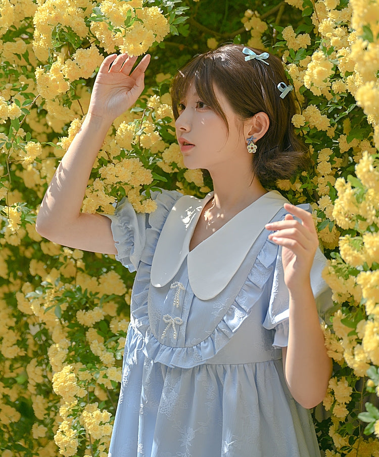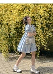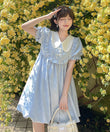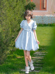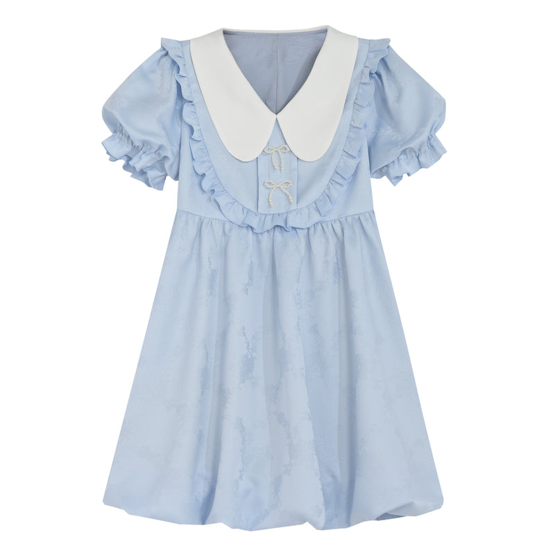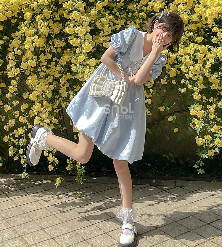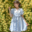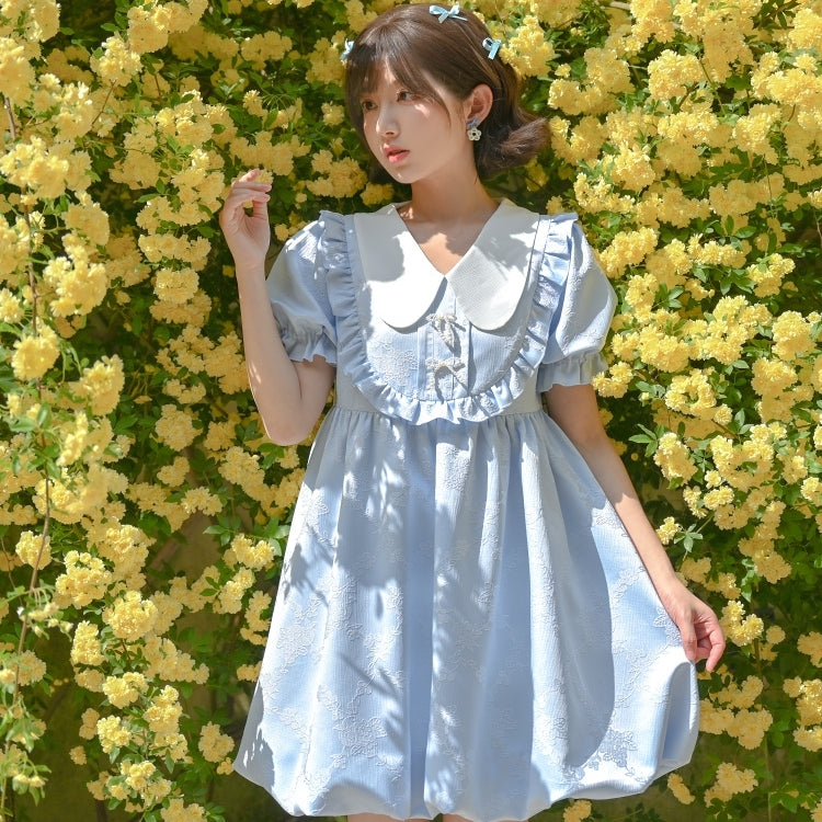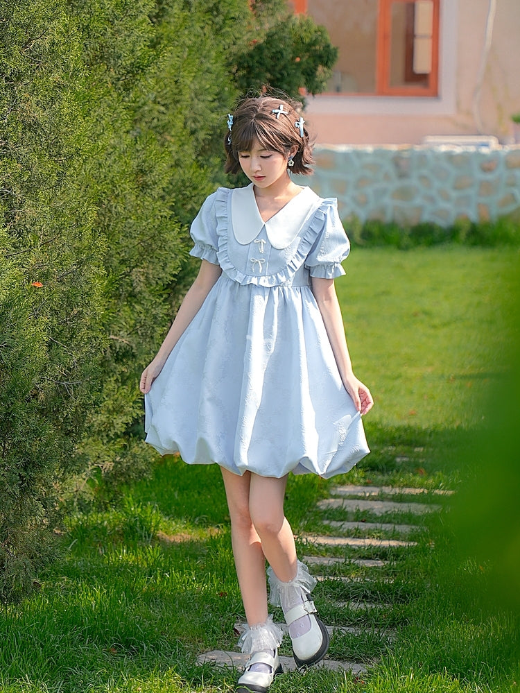 Summer Sweet Blue Puff Sleeve Doll Collar Bud Dress