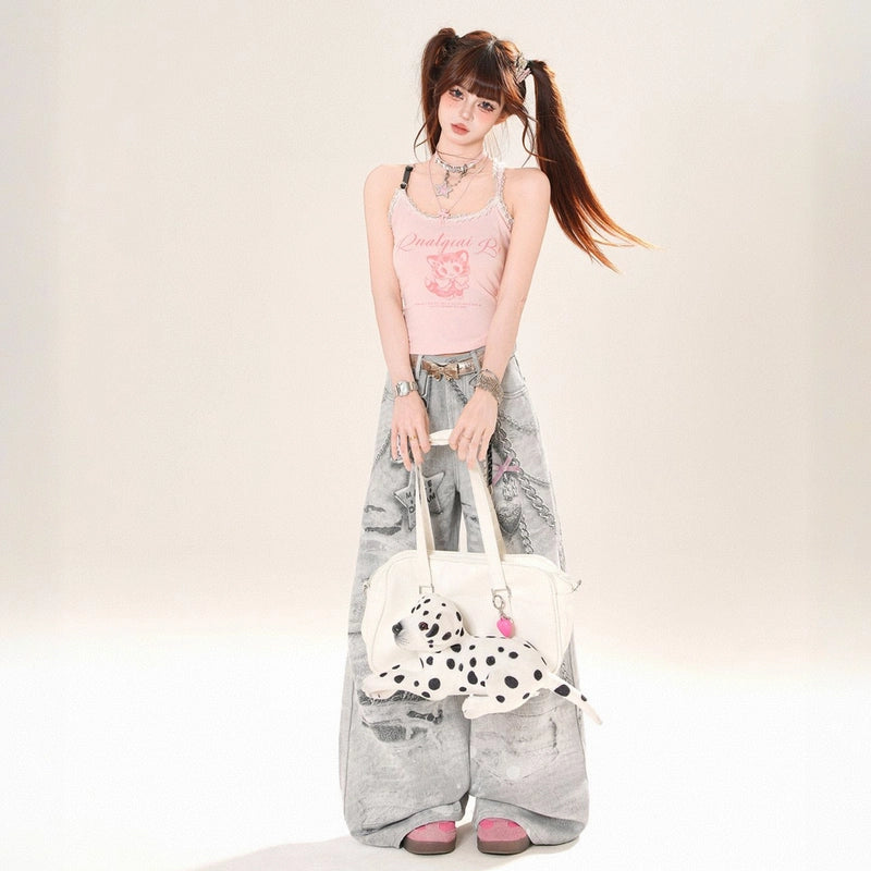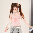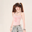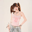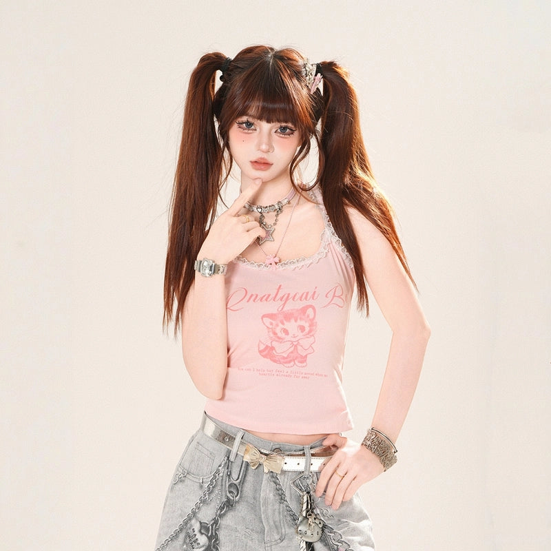 Pink kitten print vest for summer! Embrace sweet style with our sleeveless lace camisole. Slim fit and comfy in sizes S, M, L. Shop now!