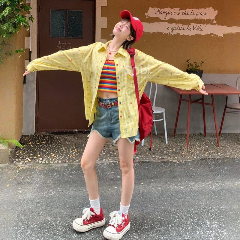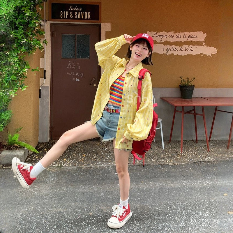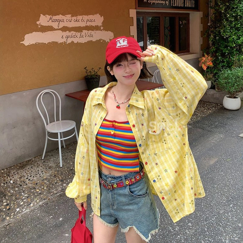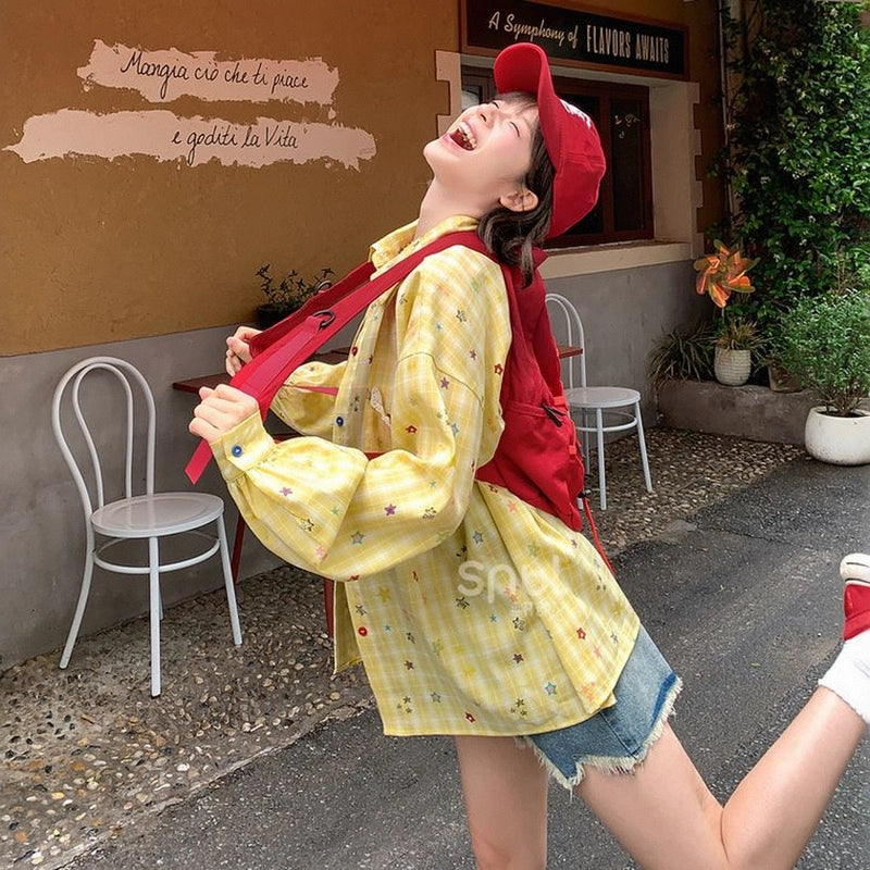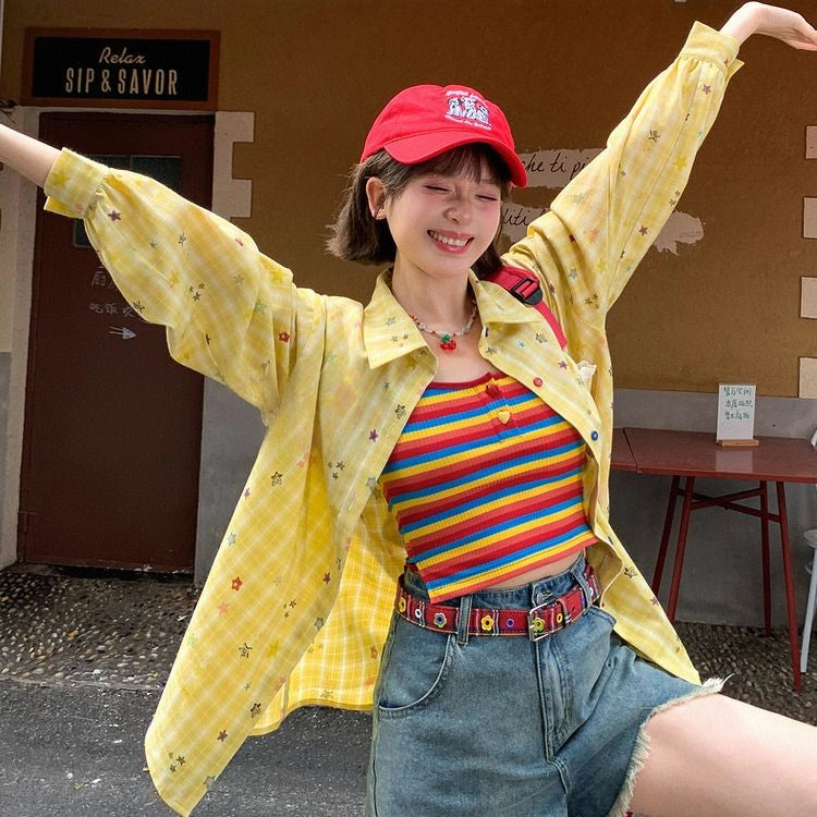 Summer Sweet Girl Style Yellow Star Print Blouse