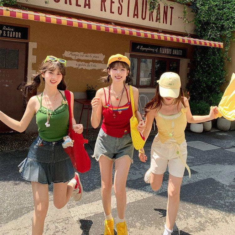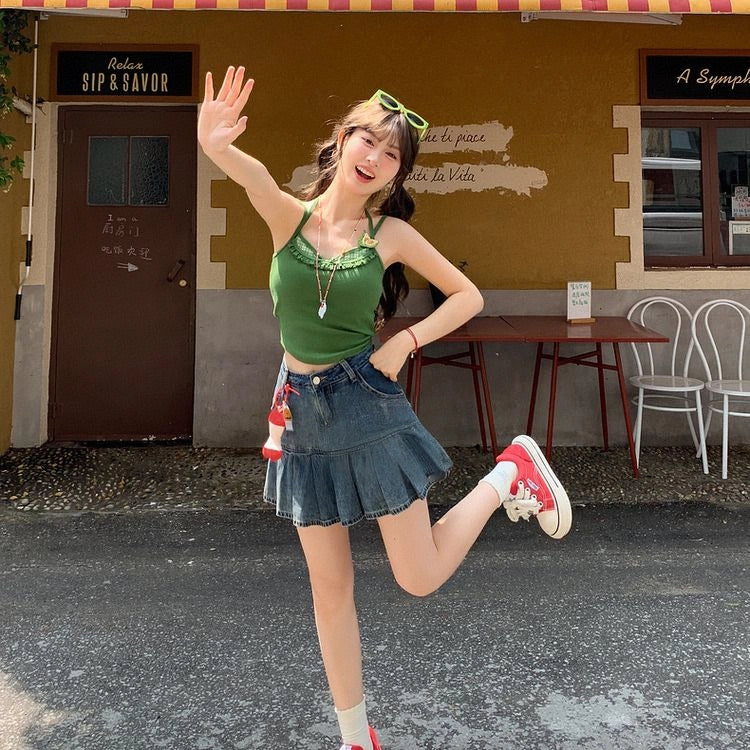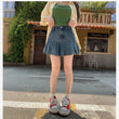 Summer Sweet Style Blue All-match Denim Pleated Skirt