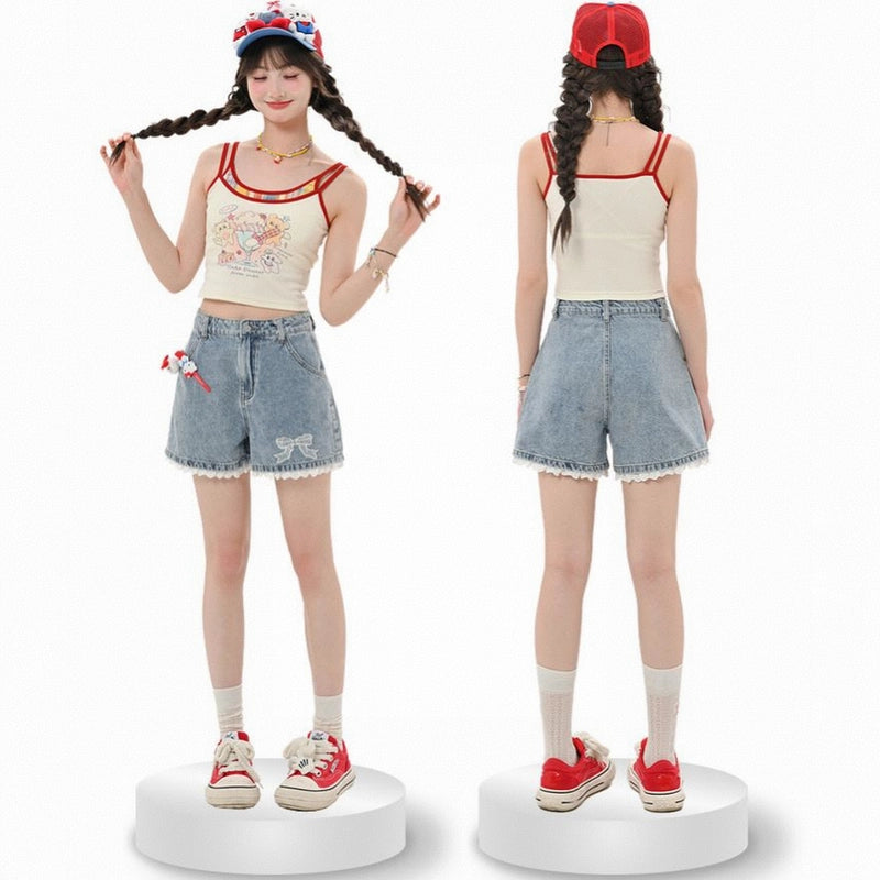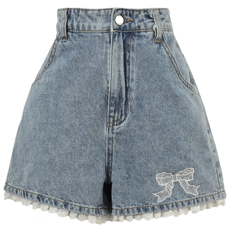 Summer Sweet Style Blue High Waist Lace Embroidery Shorts are a must-have! Discover versatile hot pants perfect for casual outings. Shop now!