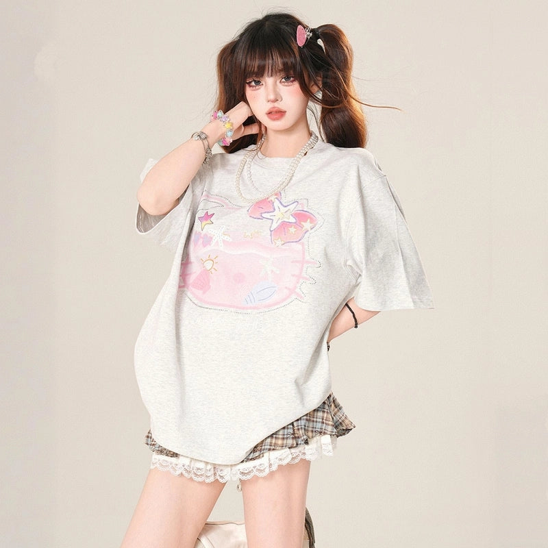 Summer Sweet Style Cartoon Hello Kitty Painted Printed T-shirt