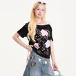 Details: Embroidery Style: Sweet Fit: Loose Pattern: Hello Kitty Sleeves: Short Sleeve Material: 100% Cotton Suitable Season: Summer Sizes: S, M, L, XL Colors: Black, WhitePackage Includes: