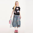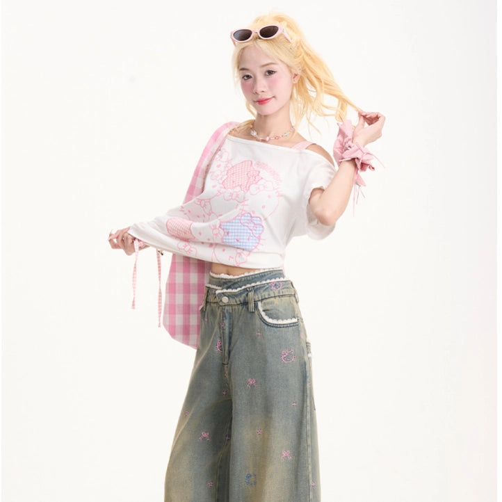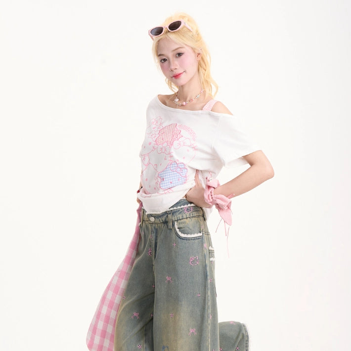 Get playful with our plaid Hello Kitty T-shirt! This short-sleeve, loose fit top combines comfort and style for a perfect summer outfit.