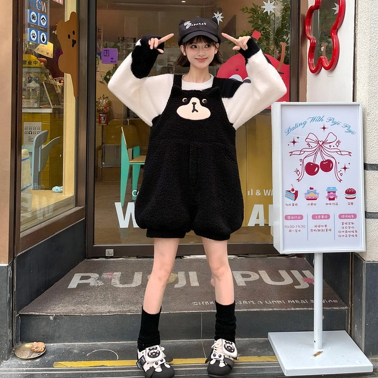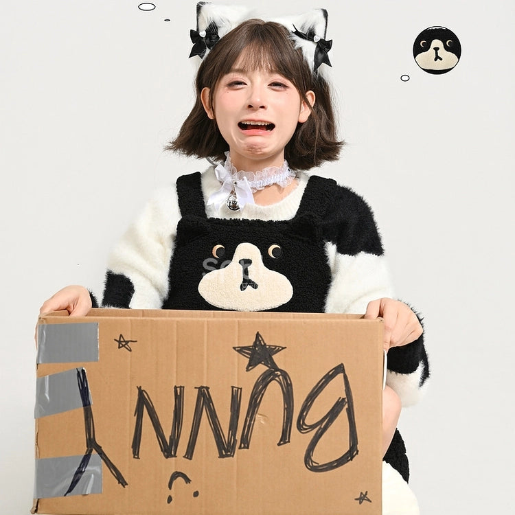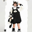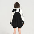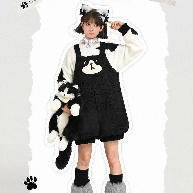 Sweet Cute Black Cartoon Cat Embroidered Overalls