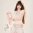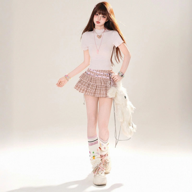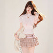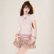 Popular elements: splicing Style: sweet Clothing version: slim fit Sleeve type: regular Material composition: polyethylene terephthalate (polyester) 95% other 5% Applicable season: summer Sleeve length: short sleeves Pattern: solid color Size: S, M, L Color: apricot, pinkPackage Includes: