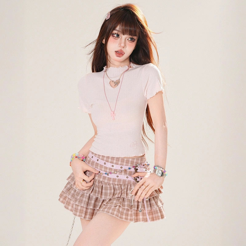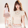 Sweet Girl Style Heart Embroidered T-shirt: Embrace summer with our slim fit, short-sleeved tee in apricot or pink. Perfect for a flattering, stylish look!
