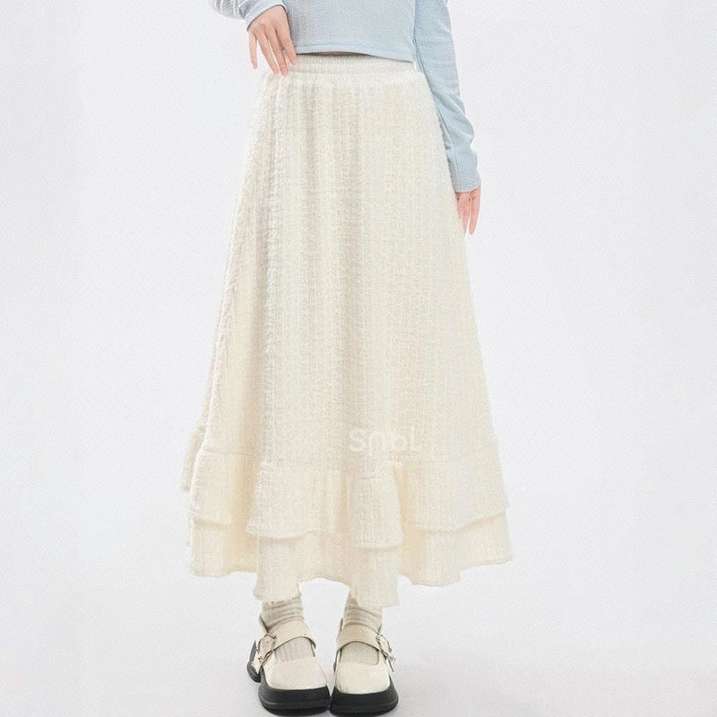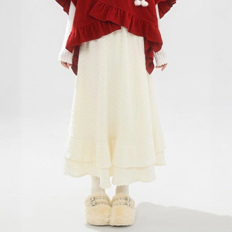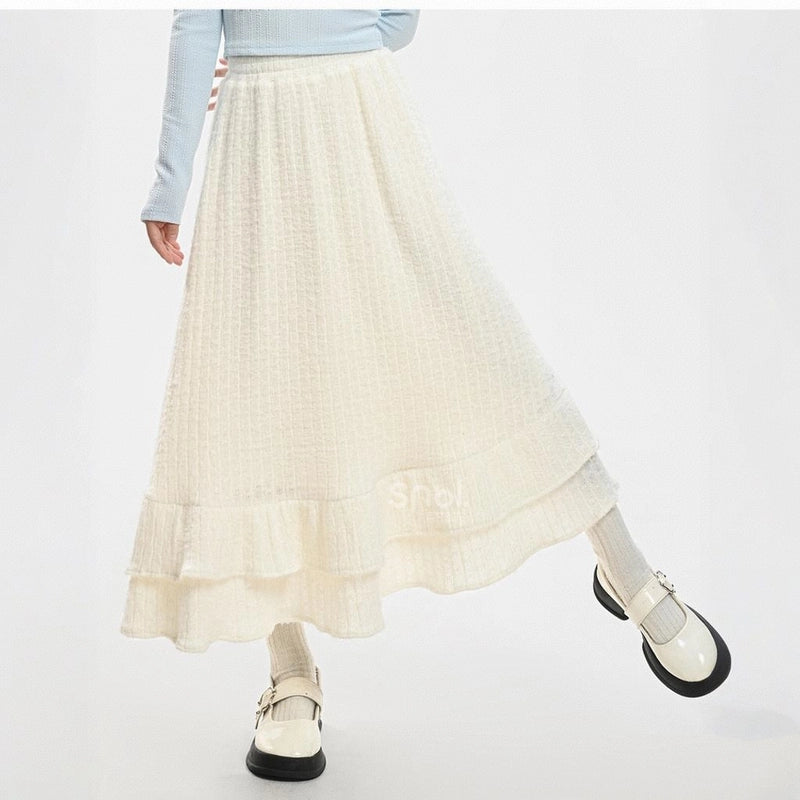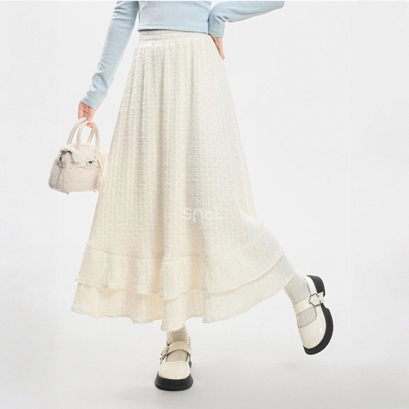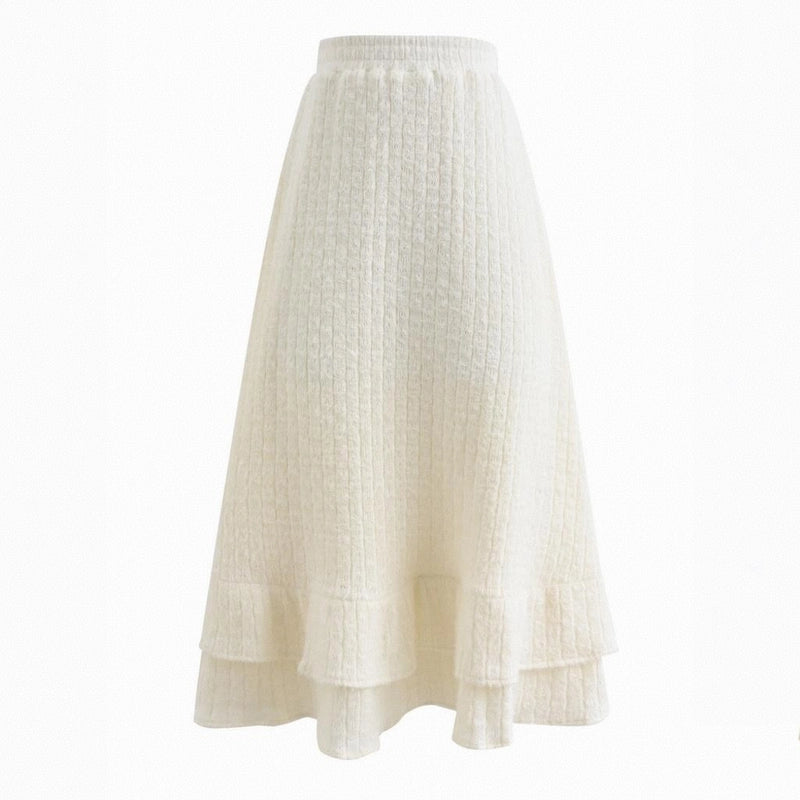 Sweet Girly Beige Knitted High-Waist Skirt