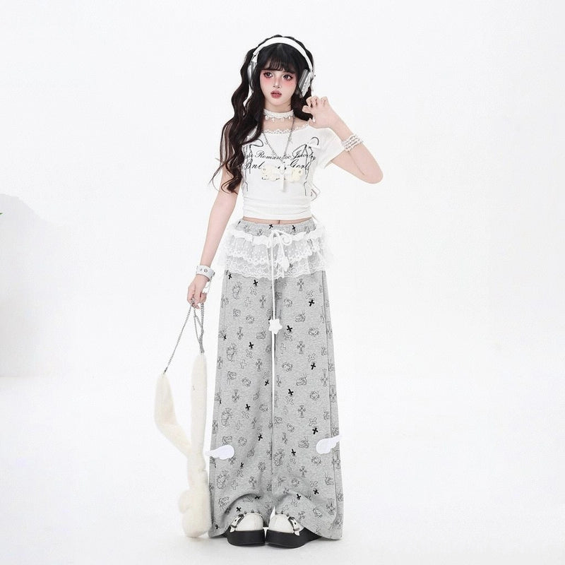 Sweet Girly Hello Kitty Printed Loose-fit Pants