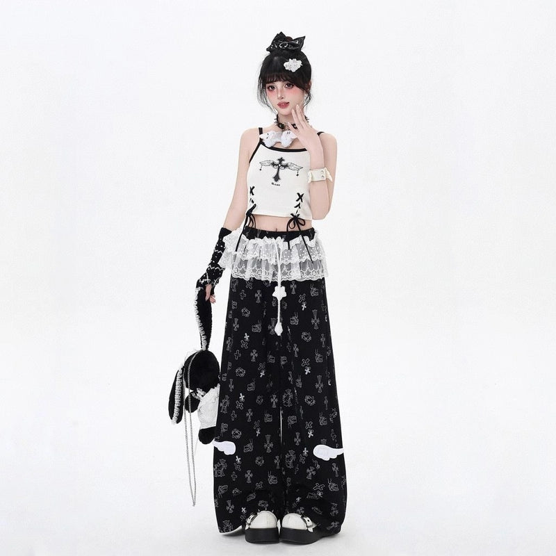 Add a playful twist to your casual looks with our Sweet Girly Hello Kitty Printed Loose-Fit Pants. Designed with a relaxed straight cut, these pants feature a charming Hello Kitty floral print and delicate lace-trim details, blending kawaii sweetness with a cool, laid-back style. Crafted from soft cotton fabric, they’re breathable and comfortable for everyday wear. Perfect for petite women, these pants pair effortlessly with hoodies, sweaters, or cute blouses for a versatile look. Available in black and light gray, sizes S, M, L, they’re a must-have for any Hello Kitty fan.