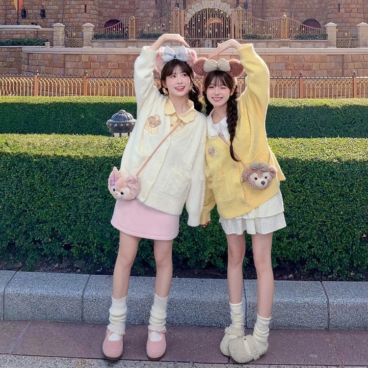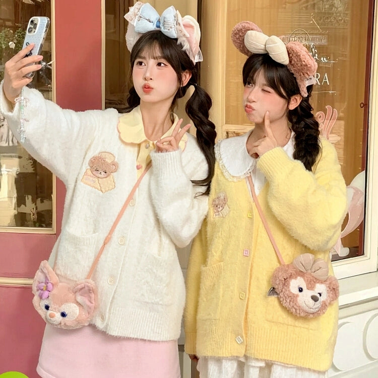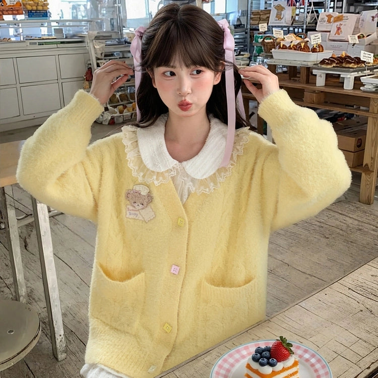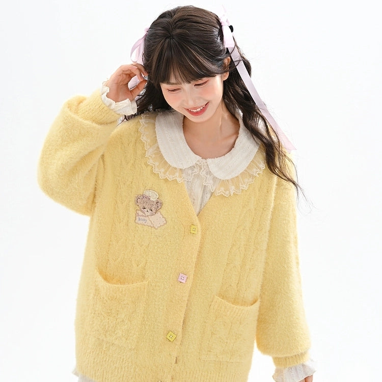 Sweet Girly Style Cute Bear Embroidered Cardigan Sweater