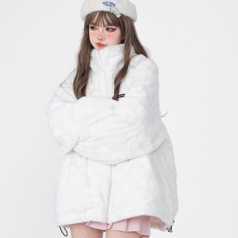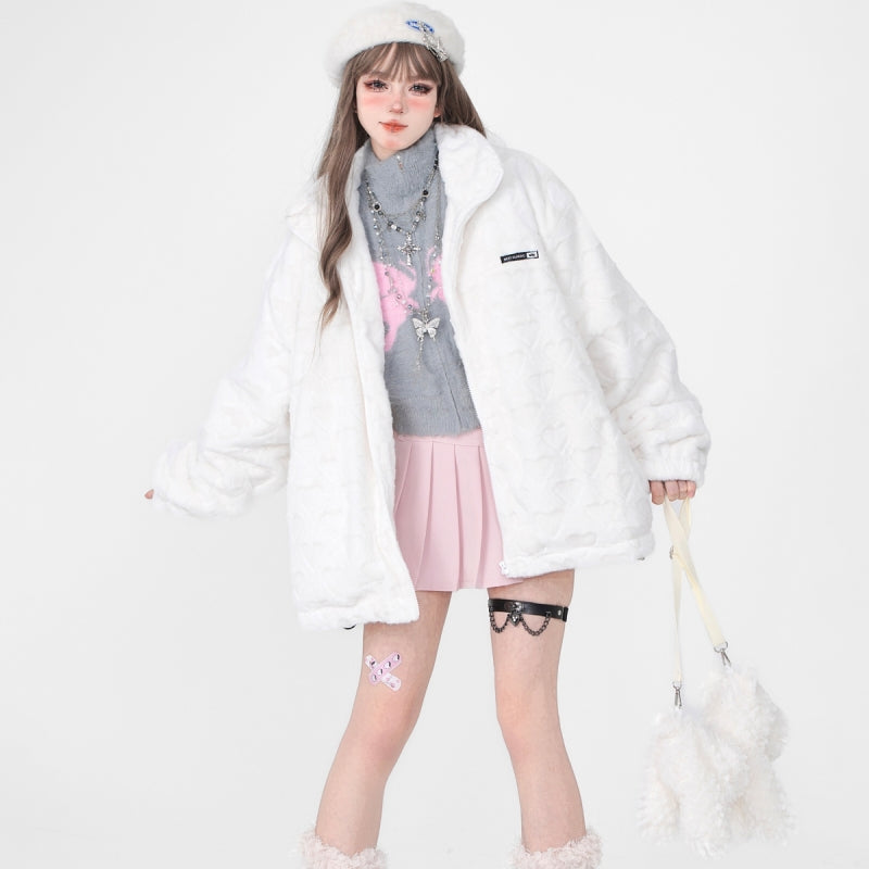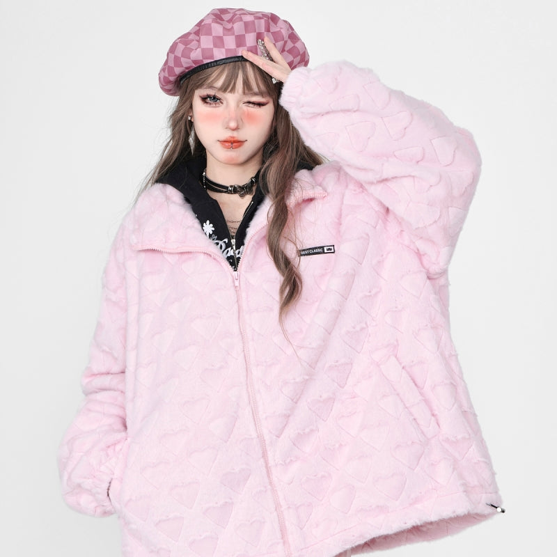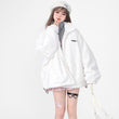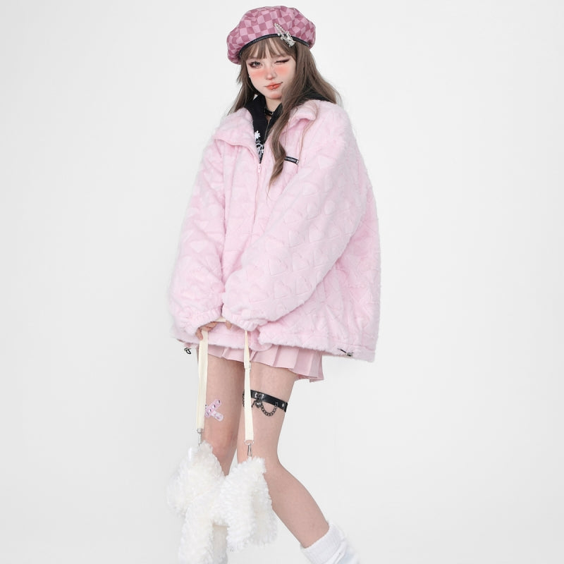Size: S M L XL pattern: plain Style: Sweet, pink aesthetic Collar: Stand collar Clothing placket: zipper Color: white, pinkPackage Includes: