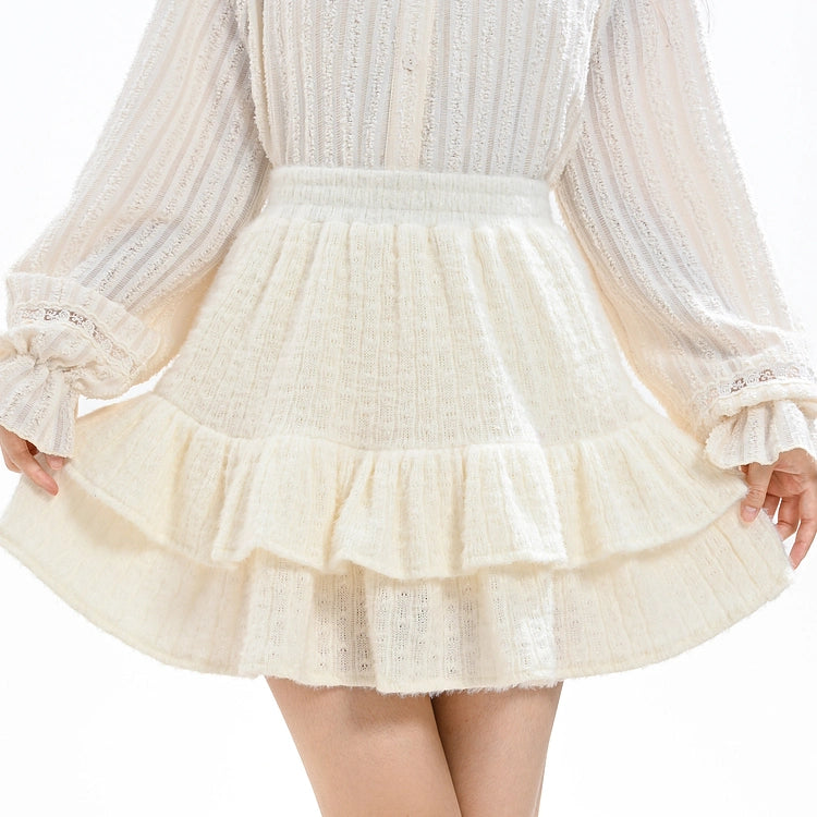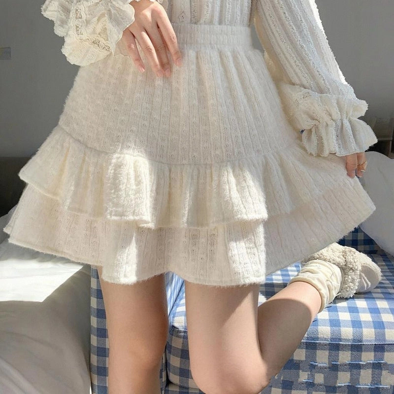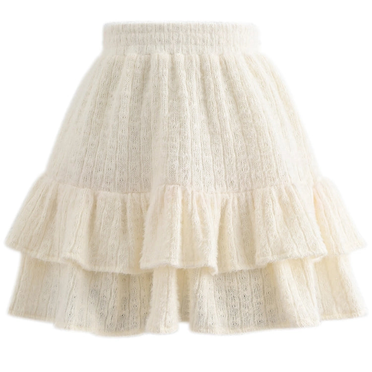 Bring kawaii charm to your fall and winter wardrobe with our Sweet Girly White High-Waisted Knit Skirt. Featuring a flattering high-waist design and playful ruffled hem, this A-line cake skirt adds a touch of sweetness to every outfit. Crafted from a soft polyester-spandex knit with a lined finish, it offers both comfort and structure for daily wear. Perfect for teens and women who love cute fashion, this versatile skirt pairs beautifully with sweaters, blouses, or cardigans. Available in white and sizes S, M, L, it’s an essential piece for creating girly, cosy seasonal looks.