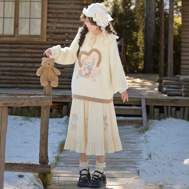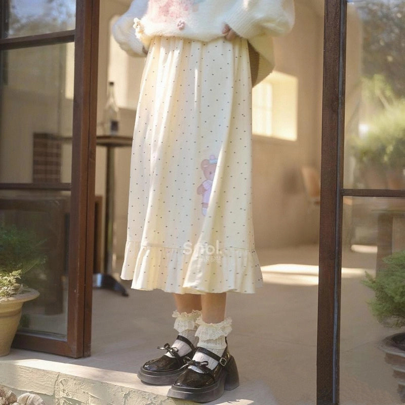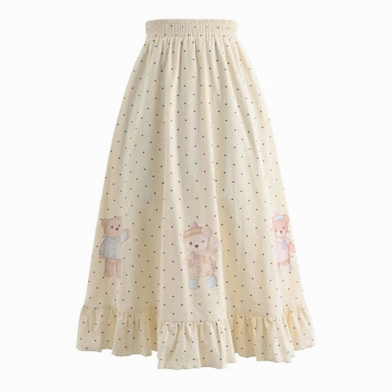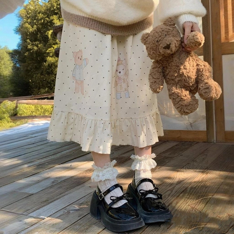 Add a playful charm to your wardrobe with our Sweet Preppy Style Bear Printed Skirt. Made from pure cotton, this high-waisted skirt combines comfort with a cute college-inspired look. The bear print design brings a touch of fun and kawaii style, perfect for pairing with sweaters, blouses, or cardigans. Its flattering fit makes it easy to wear for casual outings, school, or weekend fashion. Available in a soft apricot colour and sizes S, M, L, this skirt is a must-have for fans of sweet and preppy styles.