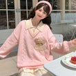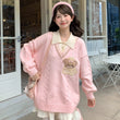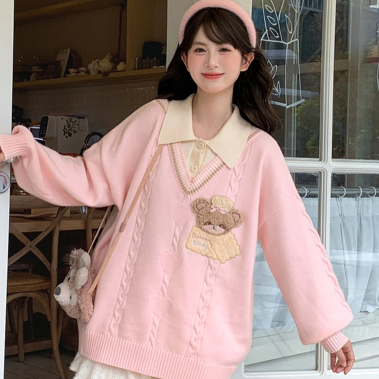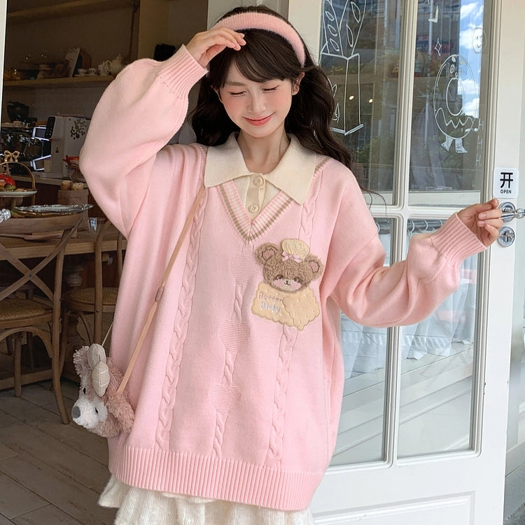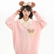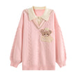 Sweet Preppy-Style Pink Bear Embroidered Sweater