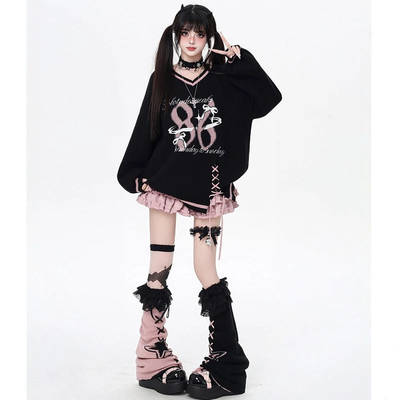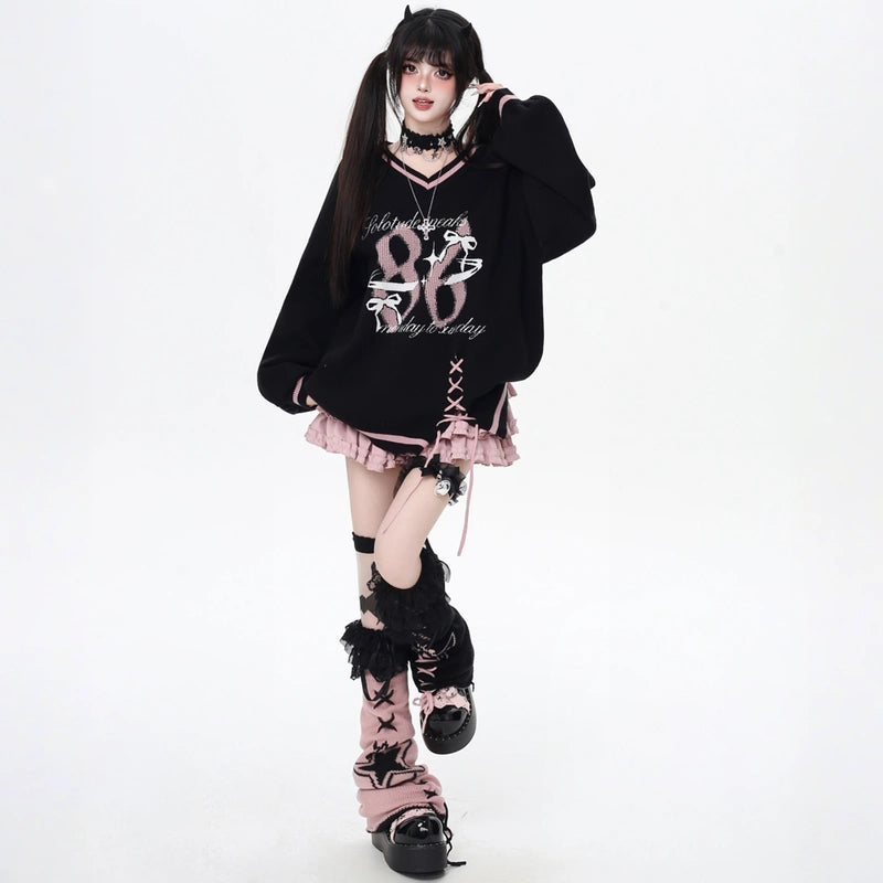 Sweet Preppy Style V-Neck Loose Sweater