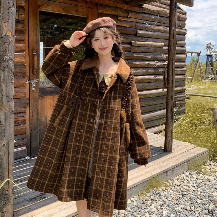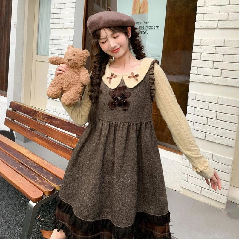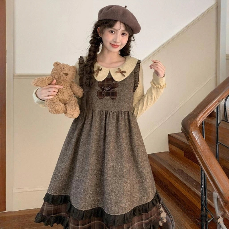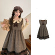 Step into autumn charm with the Sweet Retro Plaid Patchwork Loose Dress. This high-waist vest dress combines sweet and preppy style with a retro plaid patchwork design. Crafted from a cosy wool-blend fabric, it offers comfort and elegance for everyday wear. Available in Brown, sizes S–L, perfect for autumn layering.