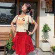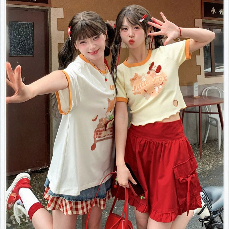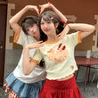 Cartoon Fox Print Round-Neck T-shirt: Discover the delightful charm of our sweet, slim fit tee, designed for a playful summer look that's both stylish and comfy!