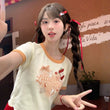 Popular elements: printing, three-dimensional decoration Style: sweet, college Clothing version: slim fit Sleeve type: short sleeve Material composition: cotton 96.4% polyurethane elastic fiber (spandex) 3.6% Fabric technology: printing Applicable season: summer Size: S, M, L, XLPackage Includes: