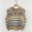 This knitted vest is the perfect piece to keep you warm and looking chic all winter long! The soft, comfortable fabric and relaxed fit make it a great choice for everyday wear, while the stylish v-neck and patchwork design add a touch of elegance. Whether you're dressing up for a special occasion or just running errands around town, this vest is sure to be a favorite in your wardrobe.